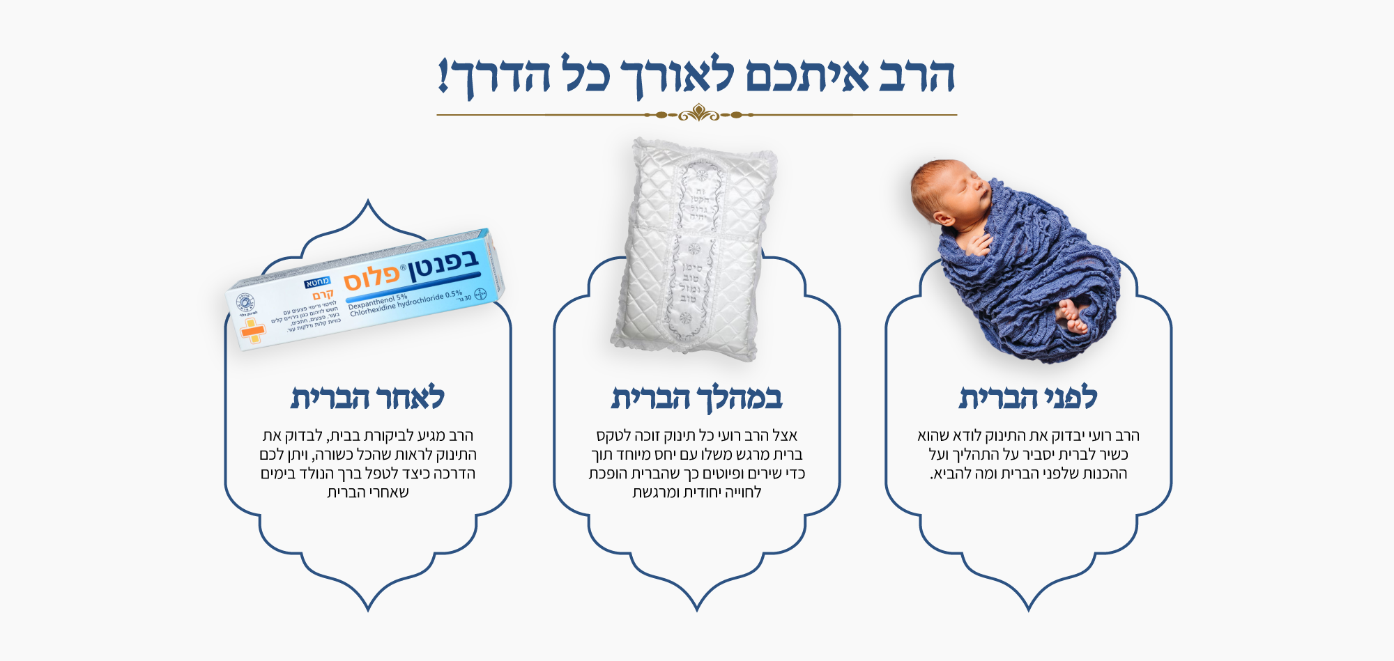 לתינוק שלכם מגיע הטוב ביותר! הרב רועי שור שליט"א הינו רב קהילה וראש כולל בטירת כרמל, מוהל מוסמך ומומחה לבריתות עם ותק 18 שנה מוהל מטעם משרד הבריאות והרבנות הראשית מ.ר 1043 ,לרב יש הסמכה של "יורה יורה" 'רב מושב' "רב עיר" שותף בארגון "איחוד הצלה", כמו כן הרב חיבר כמה ספרים ביניהם ספר 'המילה' על ברית מילה בהלכה וברפואה!! הוסמך על ידי גדולי המוהלים שבדור, מאות המלצות חמות של הורים רופאים ורבנים, הרב עורך ברית מילה בצורה הרפואית הטובה והבטוחה ביותר, ללא בכי מיותר עם אלחוש מקומי כמו כן הרב משתמש בחומרי חבישה נמסים מהמתקדמים ביותר!!